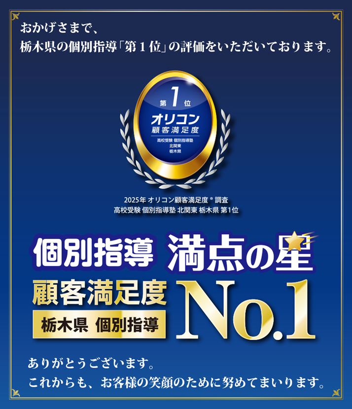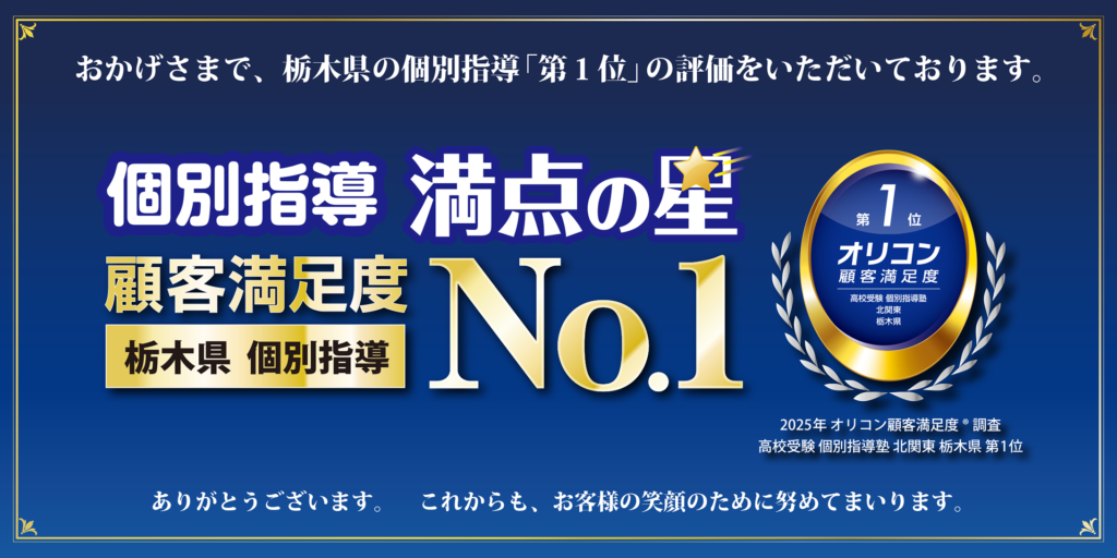 ※個別指導・満点の星(アカデミー・グループ):2025年 オリコン顧客満足度®調査 高校受験 個別指導塾 北関東 栃木県 第1位