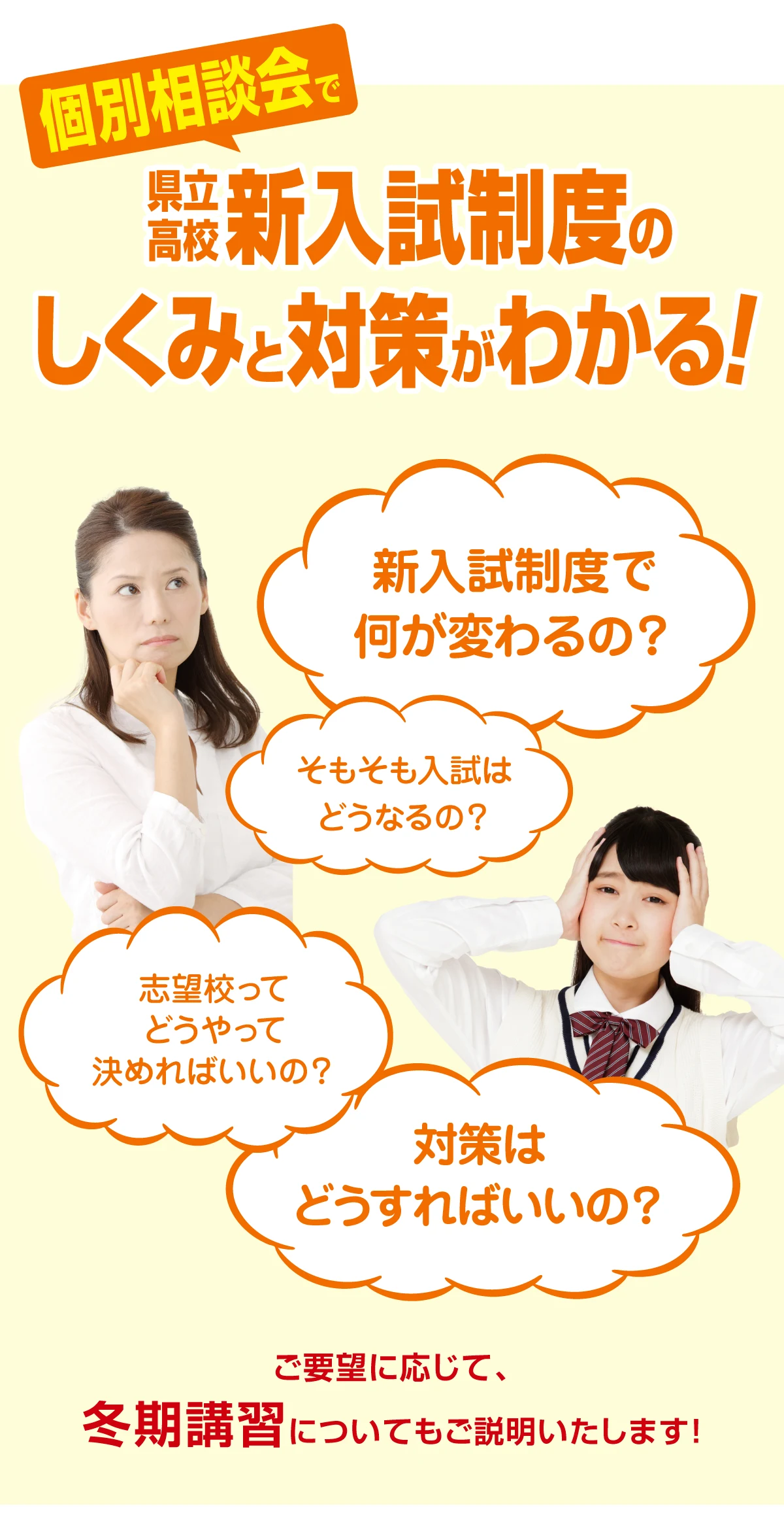 実施日程はご希望に合わせて対応いたしますので、ご希望の校舎までお問合せください。 要予約制